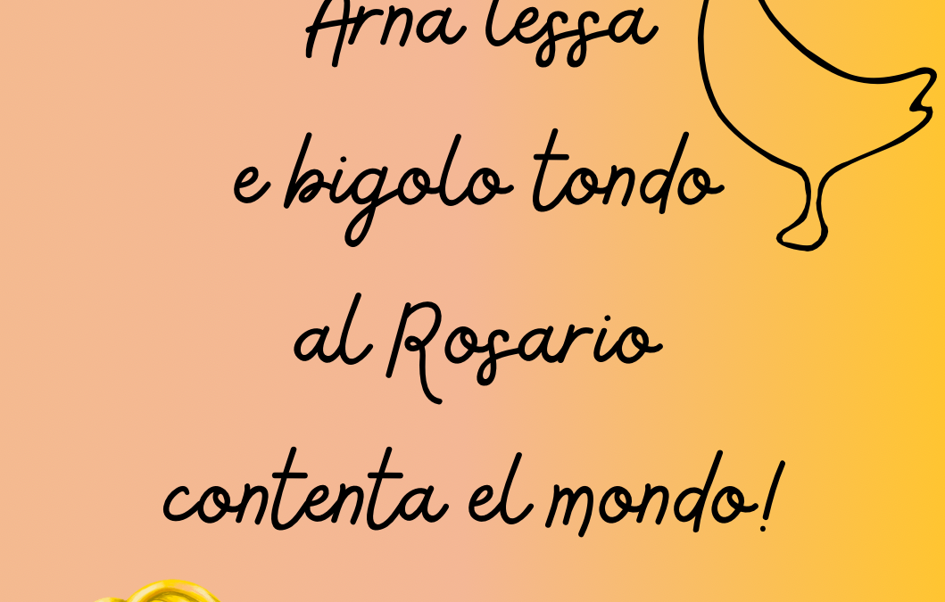 I Bigoli co’ l’Arna cioè i bigoli al sugo d’anatra. Un profumo avvolgente che sa di famiglia, di festa e di territorio. Un piatto che più di ogni altro segna l’arrivo dell’autunno, e in particolare, celebra una delle ricorrenze più sentite della nostra tradizione contadina: la Festa della Beata Maria Vergine del Rosario,
